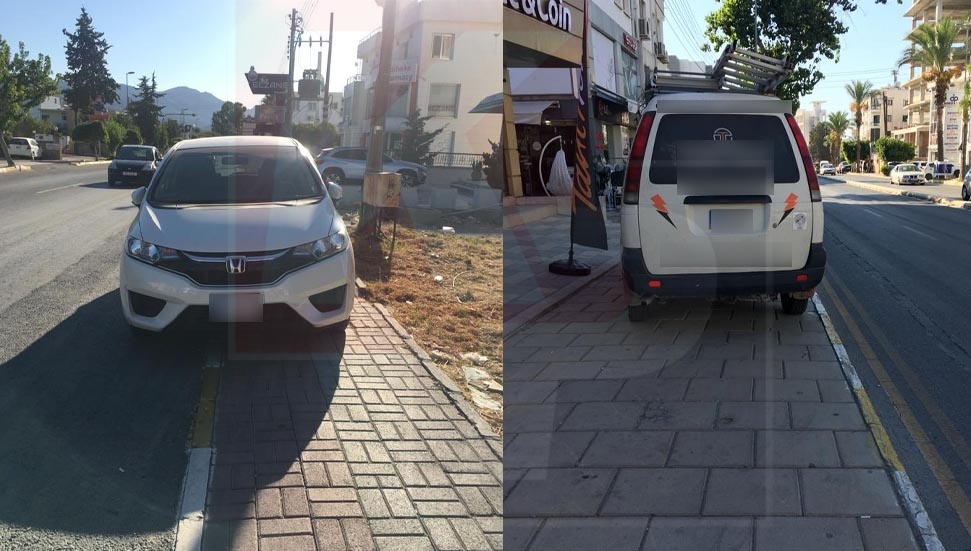 Kıbrıs’ta otobüs duraklarında, kaldırımlarda park edilmiş araçları görmek mümkün… Yayaların kullanması için yapılan kaldırımlar, araçların park ettiği yerler oldu.