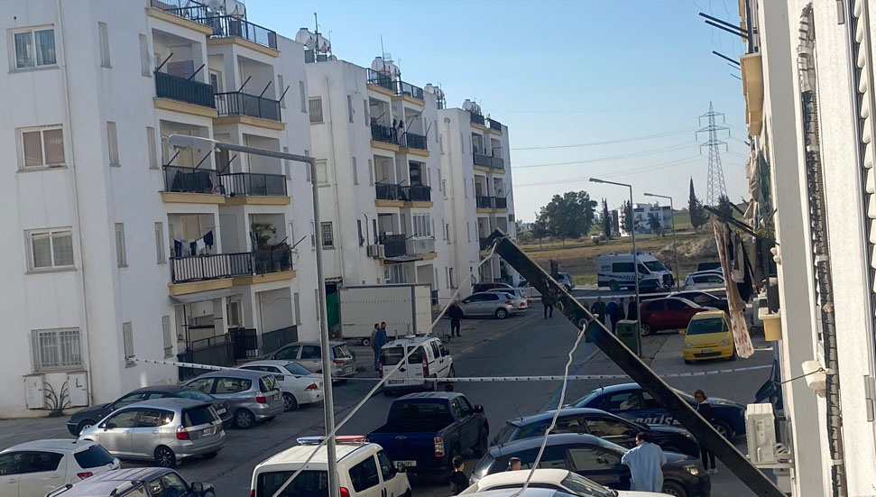 Haspolat’ta bugün öğle saatlerinde iki kişinin baltalarla korkuttuğu 23 yaşındaki genç, 11 metre yüksekten atlayarak ağır yaralandı.