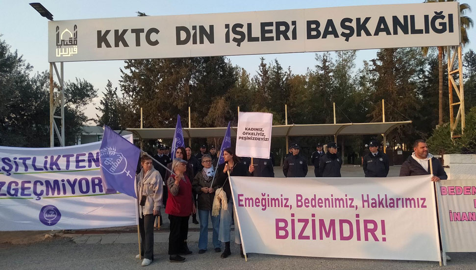Din İşleri Dairesi Başkanı Ahmet Ünsal’ın infial yaratan sözlerinin ardından eylemler devam ediyor. Örgütler "Sen de gel" sloganıyla Din İşleri Başkanlığı önünde eylem yaptı. Örgütler, Kıbrıs Gazetesi’nin bugünkü sayısında cinayet haberi için kullandığı “Aşk cinayeti” manşetine tepki göstermek amacıyla gazete binasına yürüdü.