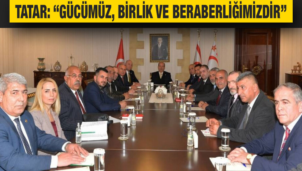 Cumhurbaşkanı Ersin Tatar toplantıda yaptığı konuşmada, Kıbrıs konusunda yaşanan son gelişmelerle ilgili olarak bilgi verirken BM Güvenlik Konseyi’nin son kararına da tepki gösterdi ve bu kararın asla kabul edilemeyeceğini belirtti.