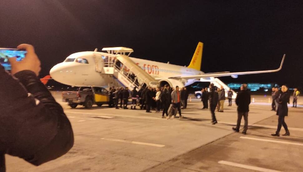 Depremden etkilenen bölgede bulunan kafilelerden biri olan Canbulat Özgürlük Ortaokulu kafilesi, Ercan Havalimanı’na ulaştı.