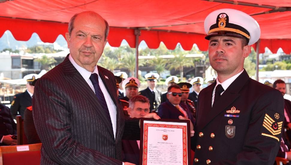 Cumhurbaşkanı Ersin Tatar’ın Gemi Hizmete Giriş belgelerini vermesi sonrasında bot komutanlarının ant içmesiyle tören devam etti.