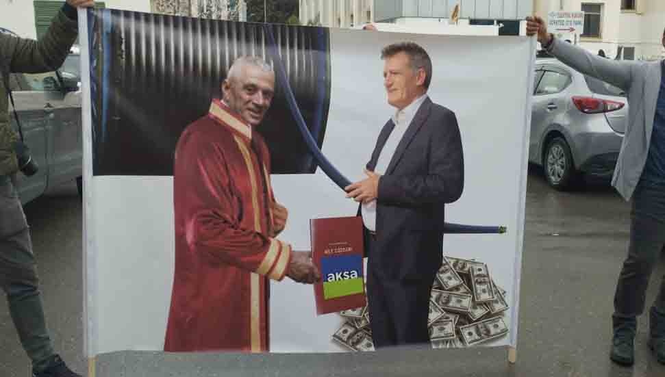 Bazı CTP milletvekilleri ile Sendikal Platform yetkililerinin de destek verdiği eylemde, Kıbrıs Türk İşçi Sendikaları Federasyonu (Türk-Sen) Başkanı Aslan Bıçaklı, El-Sen Başkanı Çağlayan Cesurer ve Kıbrıs Türk Amme Memurları Sendikası (KTAMS) Başkanı Güven Bengihan konuşma yaptı, El-Sen Genel Sekreteri Ahmet Tuğcu basın bildirisini okudu. Bildiride, yetkililer yatırım yapılmasını engellemekle ve yılda 546 milyon TL tutarındaki parayı “halkın cebinden çalarak” AKSA’ya vermekle suçlandı.