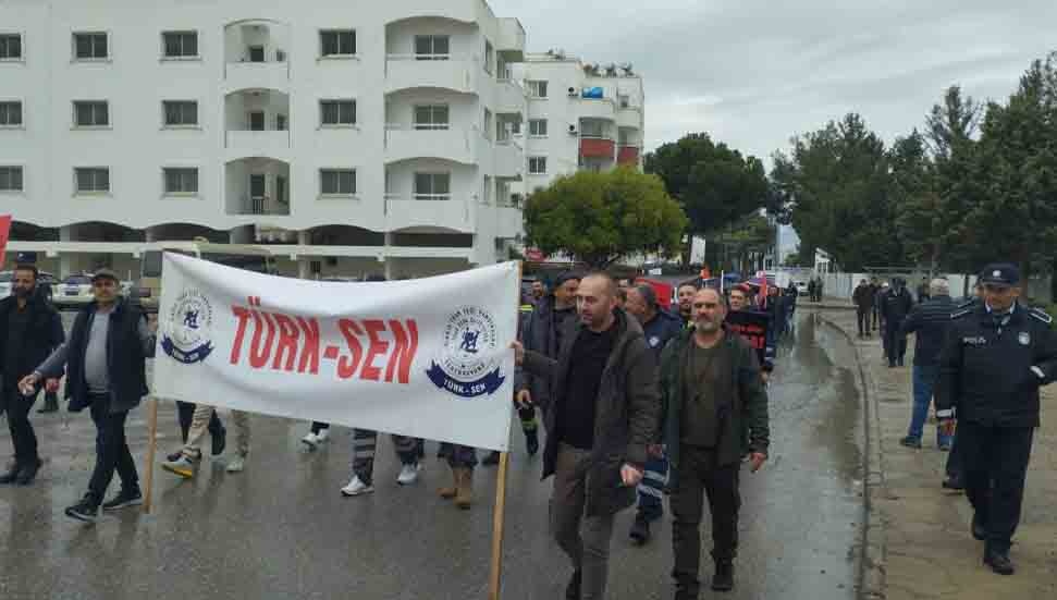El-Sen, “Kamu İhale (Değişiklik) Yasa Tasarısı ile Aksa’ya yeni imtiyaz verilmeye çalışıldığı” gerekçesiyle bugün tüm bölgelerde uyarı grevinde. Meclis önünde yapılan eylemde konuşan Türk-Sen Başkanı Arslan Bıçaklı bakanlara işaret ederek, “Sizi bu makamlara kurumları bir bir satasınız diye getirmediler” dedi.