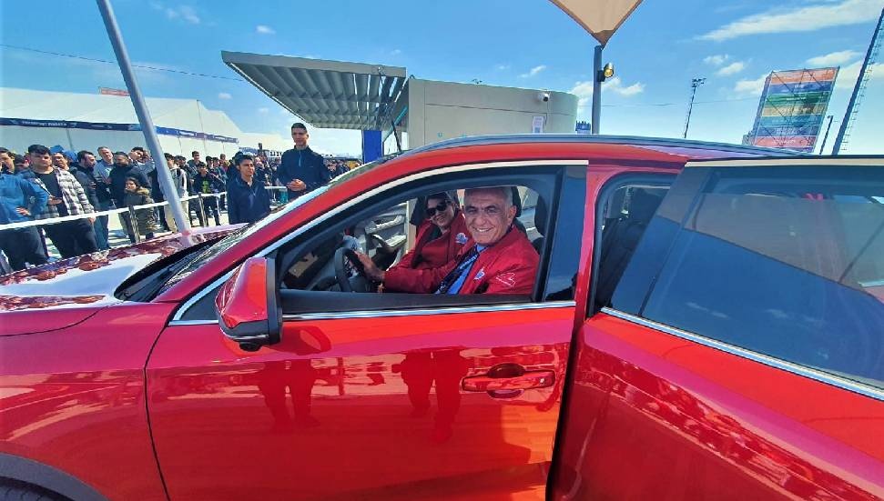 Togg aracına oturarak teknik özellikleri hakkında bilgiler alan Çavuşoğlu, test sürüşüne katıldı.