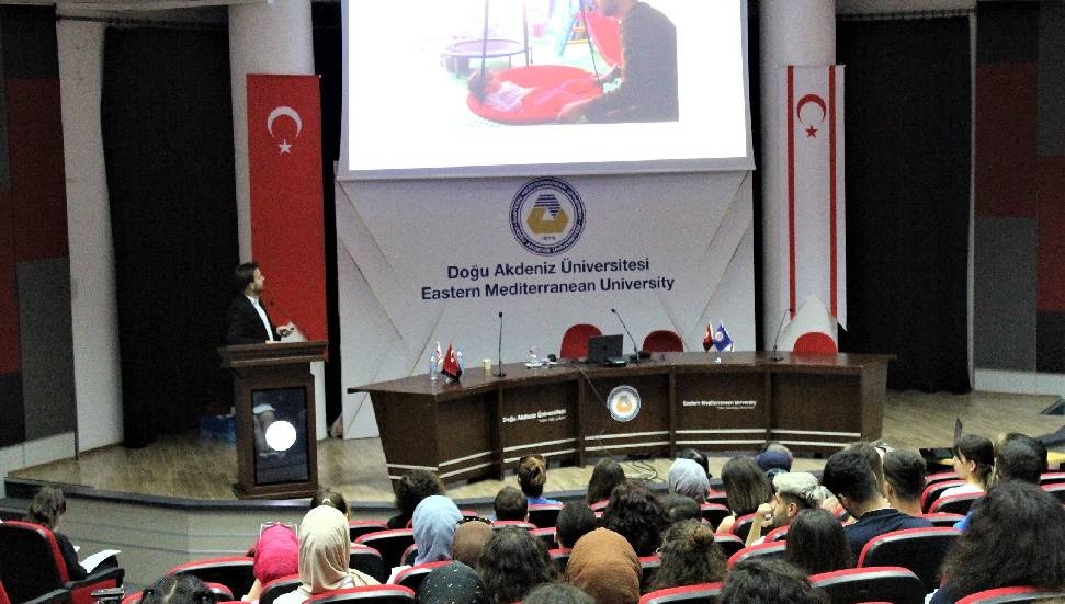 Doğu Akdeniz Üniversitesi (DAÜ) Sosyal ve Kültürel Aktiviteler Müdürlüğü, Öğrenci Kulüpleri Birimi’ne bağlı Özel Eğitim Kulübü tarafından organize edilen etkinlik kapsamında, Selçuklu Otizmli Bireyler Eğitim (SOBE) Vakfı Eğitim Direktörü Alperen Sağdıç tarafından, DAÜ Mustafa Afşin Ersoy Salonu’nda “Özel Eğitimde Teknoloji Destekli Eğitim” başlıklı konferans verildi.