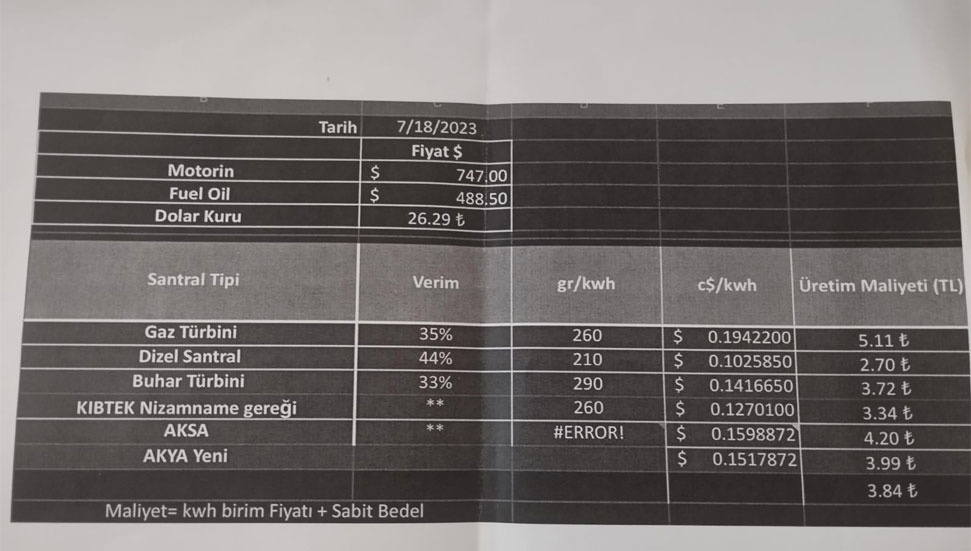 Kıbrıs Türk Elektrik Kurumu’nun (Kıb-Tek) kurulu gücü ile ilgili de ifadeler kullanan Genel Sekreter Tuğcu, “310 Megawatt (MW) kurulu gücümüz var; bunun 140 MW’ı dizeller, 120’si termik santralimiz 50 MW ise Türkiye’den sözde hibe edilen gaz türbini... 310 MW’den 70 MW’yi alabiliyoruz. Sebebi ise Erhan Arıklı döneminde bilinçli şekilde yapılmayan bakımlar. Kıb-Tek’in sonunu hazırlayan bakımların yapılmamasıdır” dedi.