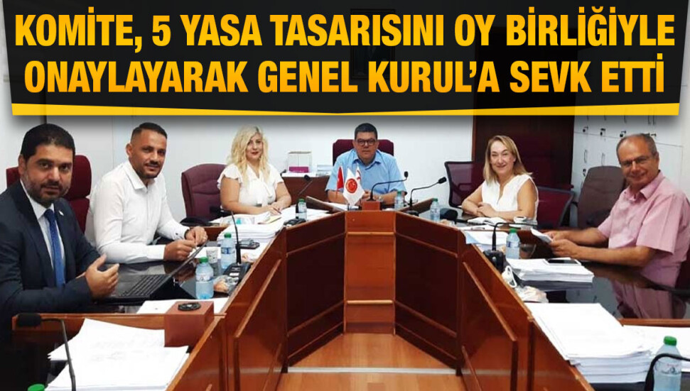 Cumhuriyet Meclisi, İdari, Kamu ve Sağlık İşleri Komitesi, gündemindeki 5 yasa tasarısını oy birliğiyle onaylayarak Genel Kurul'a sevk etti.