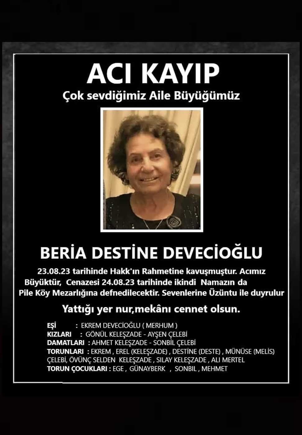 Beria Destine Devecioğlu yaşamını yitirdi.