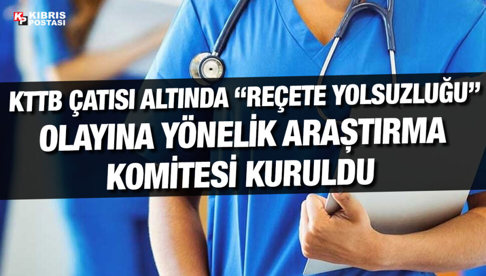 Kıbrıs Türk Tabipleri Birliği (KTTB), ‘reçete yolsuzluğu’ olayına ilişkin birlik çatısı altında araştırma komitesi kurulduğunu belirtti.
