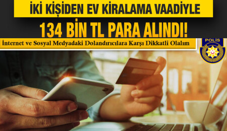 Polis, son olarak bir Facebook kullanıcısının sahte kiralık ev ilanları paylaşıp, yazıştığı iki şahıstan ev kiralama vaadiyle 134 bin TL para aldığı bilgisini verdi.