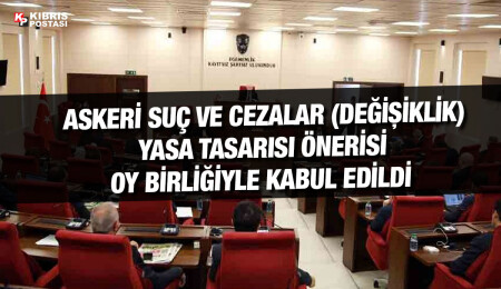 Genel kurulda daha sonra Meclis Başkan Yardımcısı, CTP Girne Milletvekili Fazilet Özdenefe’nin sunduğu Askeri Suç ve Cezalar (Değişiklik) Yasa Tasarısı Önerisi ele alındı.