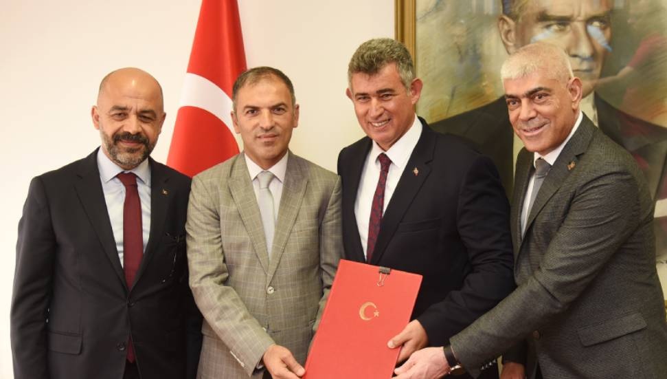 TC Lefkoşa Büyükelçiliği’nde gerçekleşen yurt protokolüyle ilgili imza töreninde TC Lefkoşa Büyükelçisi Metin Feyzioğlu, Kamtek LTD. Direktörü Ali Kamacıoğlu, TC Lefkoşa Büyükelçiliği Spor Koordinatörü Mithat Tekçam ile KEİ Kıbrıs Koordinatörü Ömer Cihan bulundu.