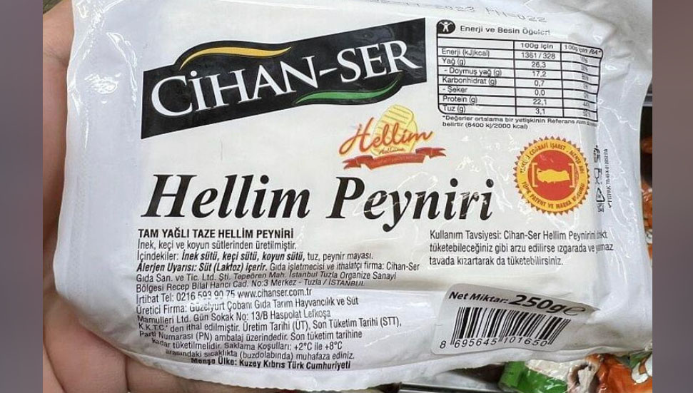 Türkiye’de faaliyet gösteren CİHAN-SER isimli gıda şirketi, Haspolat’ta üretilen hellimi marketlerde satışa sunuyor. KKTC menşeli olduğu belirtilen hellimlerin ambalajında ise ‘hellim peyniri’ ibaresi yer alıyor.