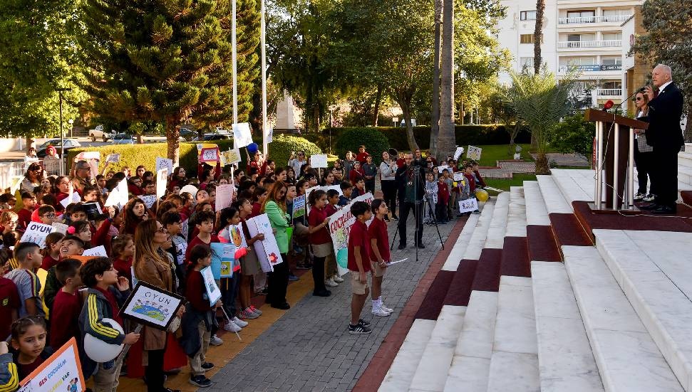 Töre’nin konuşmasının ardından öğrenciler Mustafa Türk ve Belinay Rana Ekşi, “Türk Çocuğunun Andı” ve “Dünya Çocuk Hakları Andını” okudu.