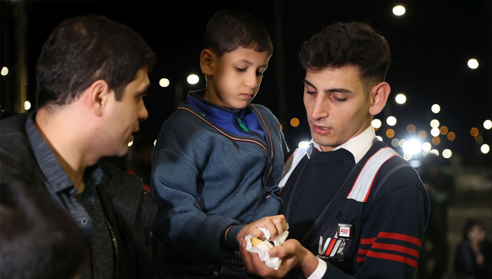 Gazze'den tahliye edilen vatandaşlara havalimanında çay ve kurabiye ikramında bulunuldu.