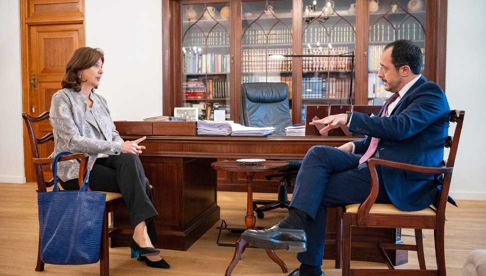Birleşmiş Milletler (BM) Genel Sekreterinin Kişisel Temsilcisi Maria Angela Holguin Cuellar, Rum Yönetimi Başkanı Nikos Hristodulidis’le bugün bir saat süren bir görüşme yaptı.