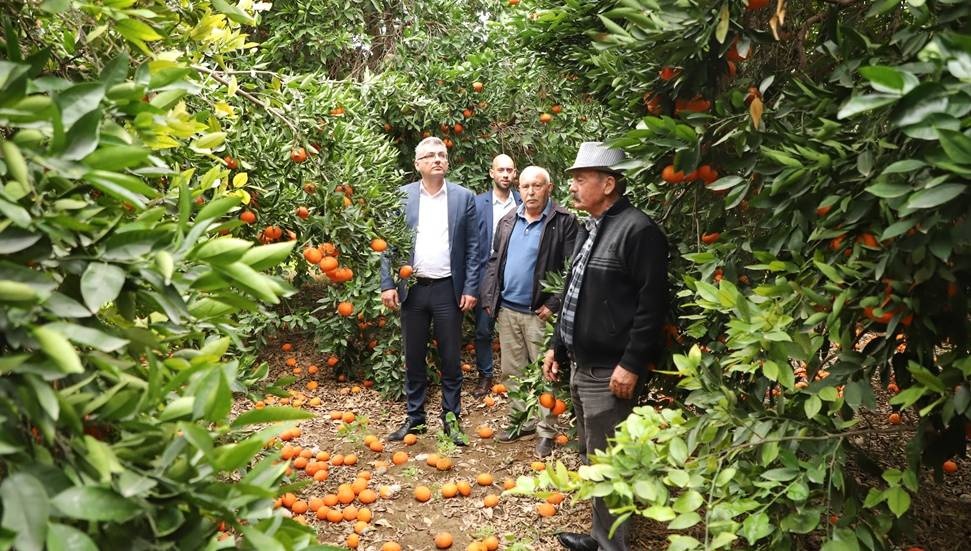 Narenciye üreticilerini ziyaret eden Erhürman: "Üreticiyi korumak için planlama şart"