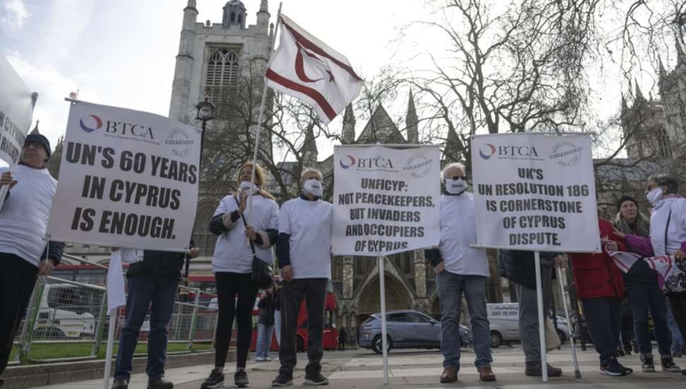Kıbrıslı Türkler, 60. yılında BMGK'nin Kıbrıs'a barış gücü gönderilmesi kararını Londra'da protesto etti
