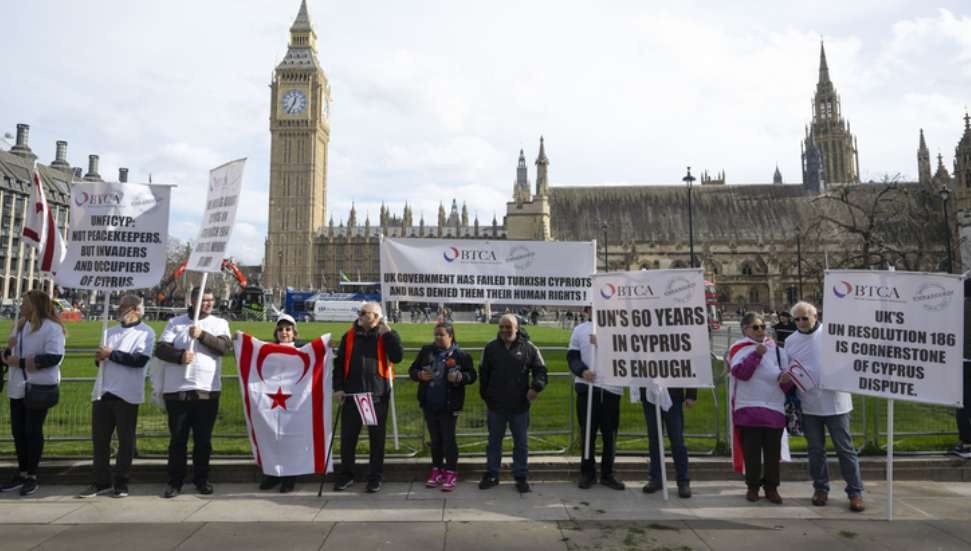 İngiltere Kıbrıs Türk Dernekleri Konseyi (BTCA) ile "Ambargolu (Embargoed)" adlı sivil toplum örgütünün öncülüğünde İngiltere Parlamentosu önündeki meydanda bir araya gelen Kıbrıs Türkleri, BMGK'nin 1964'te aldığı kararının 60. yılında söz konusu kararın iptalini talep etti.