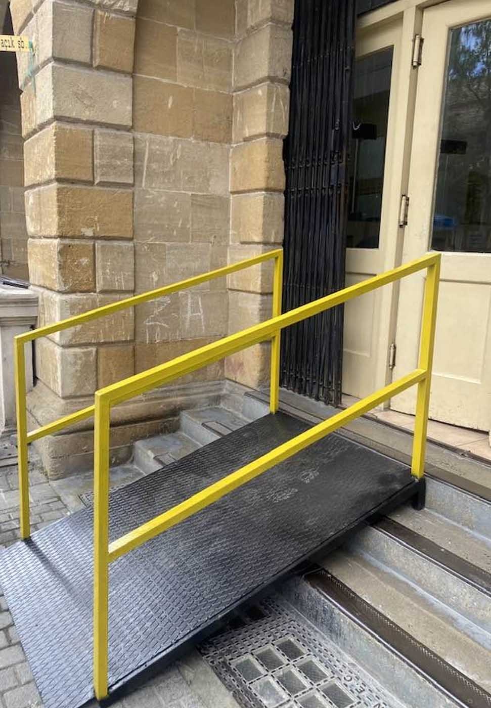 Umumi Bina Amaçlı Gelişmelerde Engelli Standartları, engelli rampalarının 0,6 cm -1,3 cm arasındaki seviye farklılıklarının 1:2’den daha fazla olmayan bir eğimle düzenlenmesini ve rampaların tasarlanırken temel hedefin, tekerlekli sandalye kullanıcıları ve görme engelliler açısından yükseklik farkını aşarken ergonomik açıdan gerekli koşulları sağlaması gerektiğini içeriyor.