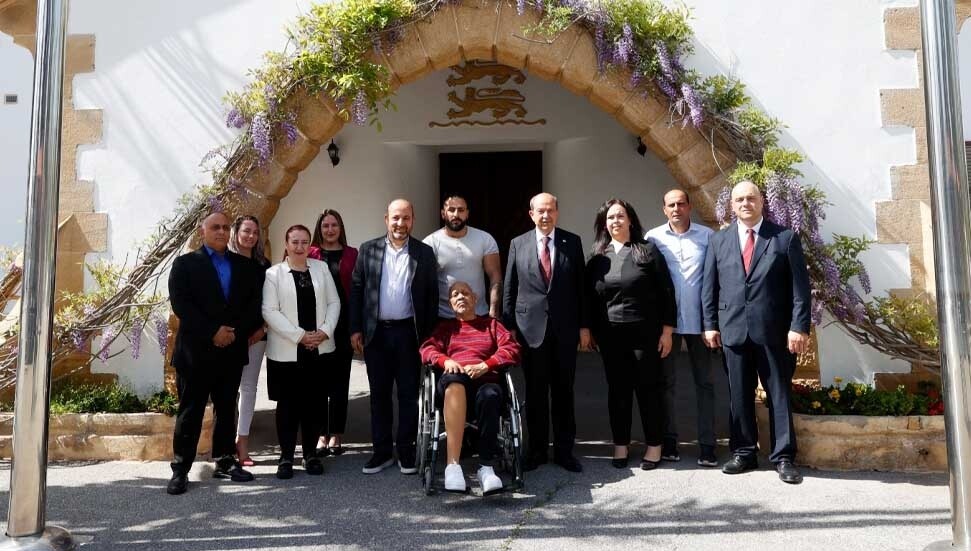 Cumhurbaşkanı Ersin Tatar, protez bacak takılan Lefkeli Kamil olarak bilinen Kamil Eronat’ı kabul etti.
