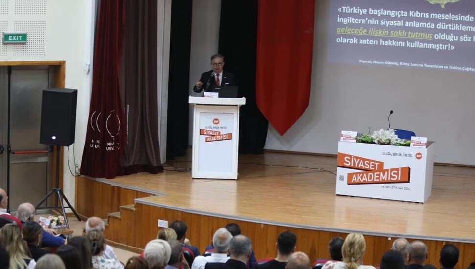 Ulusal Birlik Partisi Siyaset Akademisi’nin I. dönem 5. hafta programı Müstafi Tümamiral Doç. Dr. Cihat Yaycı, Prof. Dr. Levent Eraslan ve Ulusal Birlik Partisi Siyaset Akademisi’nin I. dönem 5. hafta programı Akademi Koordinatörü, UBP Grup Başkan Vekili Dr. Ahmet Savaşan moderatörlüğünde, UBP’li genç, kadın ve üyelerin yanı sıra, Meclis Başkanı Zorlu Töre, UBP Genel Başkanı, Başbakan Ünal Üstel, Bakanlar, Milletvekilleri, İlçe Başkanları, Belediye Başkanları’nın katılımı ile Yakın Doğu Üniversitesi (YDÜ) Büyük Kütüphane’de gerçekleştirildi.