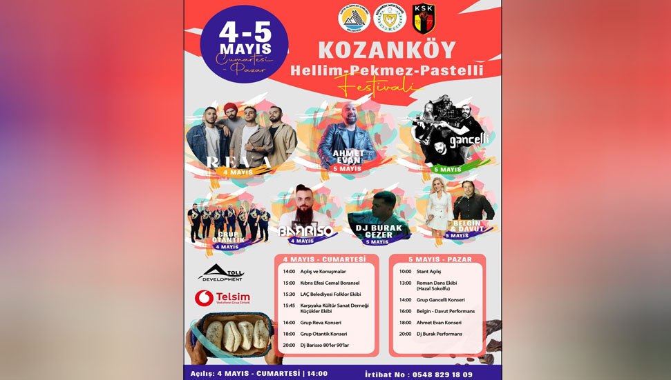 Lapta Alsancak Çamlıbel Belediyesi, Kozanköy Muhtarlığı ve Atoll Kozanköy Spor Kulübü’nün ortaklaşa düzenleyeceği “4. Kozanköy Hellim, Pekmez, Pastelli Festivali” başlıyor.