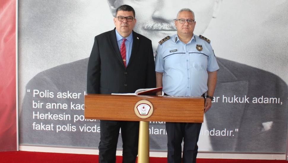 Eğitimleri yerinde incelemek adına Maliye Bakanı Özdemir Berova bugün Polis Okulu Müdürlüğüne ziyaret gerçekleştirdi. Bakan Berova’yı Polis Okulu Müdürü Hüseyin Kadir Çete karşıladı. Ziyaret anısı olarak müdürlük ziyaret defterini imzalayan Bakan Berova, eğitimler hakkında Polis Okulu Müdürü Hüseyin Kadir Çete’den bilgi aldı.