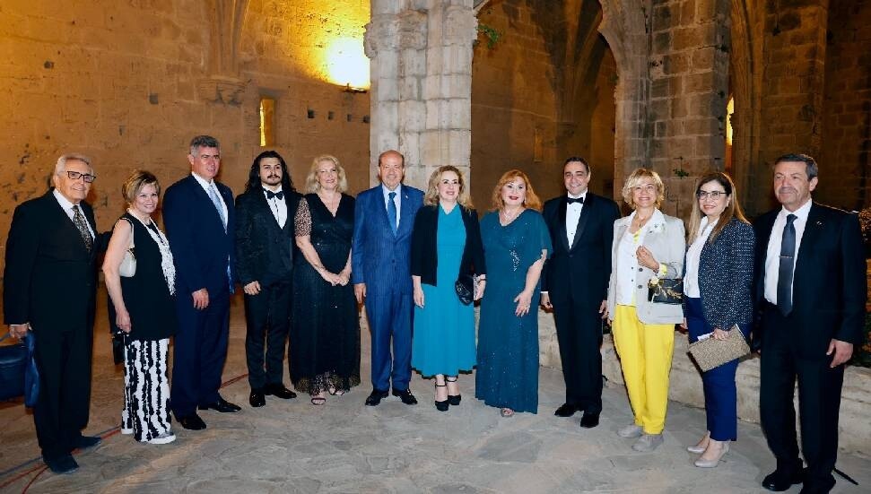 Cumhurbaşkanı Ersin Tatar, eşi Sibel Tatar ile birlikte 26. Kuzey Kıbrıs Uluslararası Bellapais Müzik Festivali açılış gala konserinde Türkiye’nin Renkleri Şan Resitali’ni izledi.