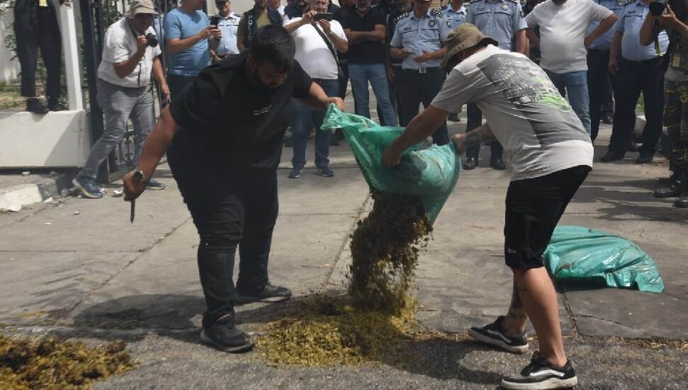 Sektördeki sorunlarına çözüm bulunmadığını ifade eden üreticiler, Bayındırlık ve Ulaştırma Bakanlığı önüne gübre dökerek tepkilerini gösterdi. Eylemciler, ayrıca bakanlığı çevreleyen demir parmaklıkları da yıktılar.