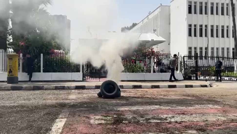 Bakanlık önünde yakılan ateşin itfaiye tarafından söndürülme girişimi üzerine eylemde kısa süreli gerginlik yaşandı.