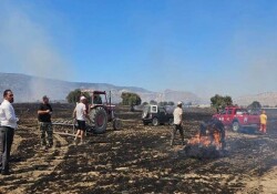 Çınarlı köyünün güneydoğusunda dün çıkan yangında kızılçam, selvi, zeytin, harnup ağaçları, biçilmemiş arpa, buğday ile balya ve anızlar yandı.