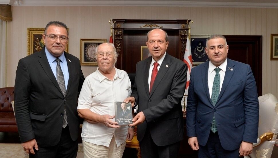 Cumhurbaşkanlığından verilen bilgiye göre, Ahmet Tolgay, kaleme aldığı “Ersin Tatar’la Tarih ve Bilinç Yolculuğu” isimli kitabı Cumhurbaşkanı Tatar’a takdim etti.