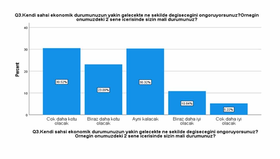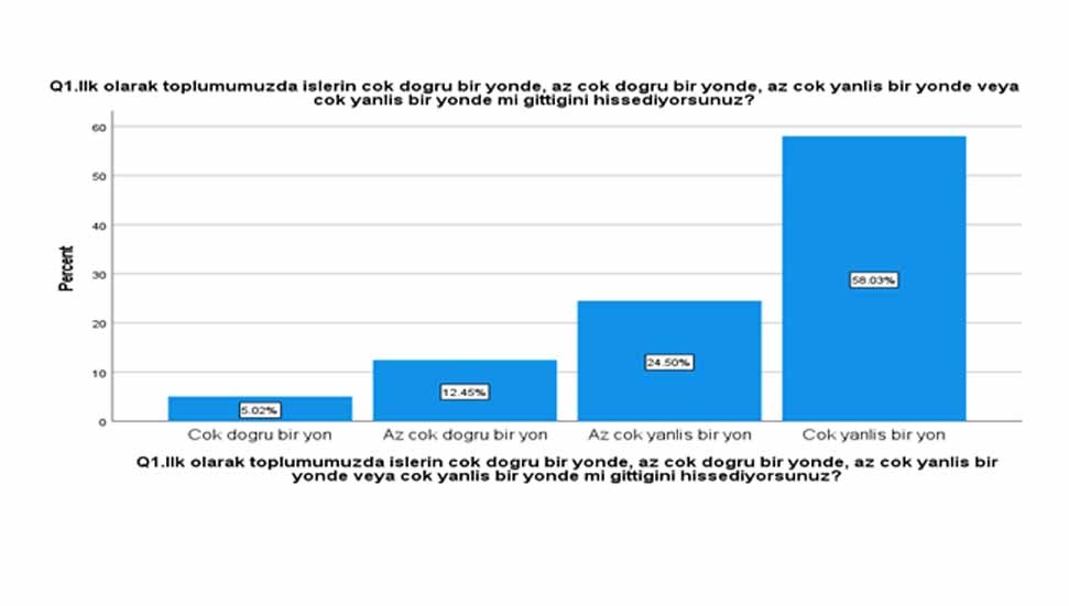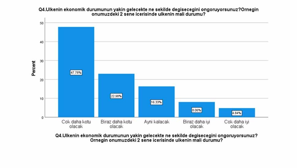 Katılımcılar arasında sadece yüzde 17.47 oranında bir kesim toplumda işlerin doğru bir yönde gittiğini, ekonomik durumun iki sene içerisinde daha iyiye gideceğini düşünenlerin oranının ise yüzde 12.9.
