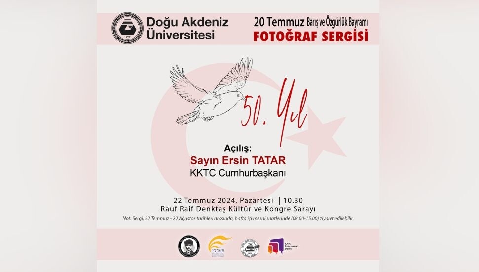 Doğu Akdeniz Üniversitesi (DAÜ) Rektörlüğü himayelerinde, DAÜ Atatürk Araştırma ve Uygulama Merkezi (DAÜ-ATAUM) ile DAÜ İletişim Fakültesi iş birliğinde, Türk Ajansı Kıbrıs (TAK) ve Enformasyon Dairesi katkılarıyla 20 Temmuz Barış ve Özgürlük Bayramı fotoğraf sergisi düzenleniyor.