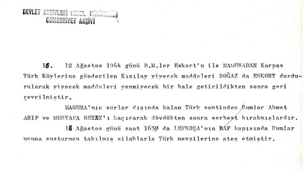 Rumların, Kıbrıs Türklerine uyguladığı mezalime ilişkin detaylar, 11 Ağustos 1964'te dönemin başbakanına iletilen bir raporda ayrıntılarıyla aktarılıyor.