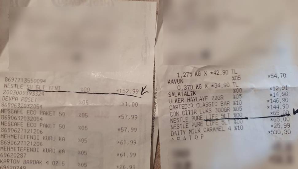 Marketlerdeki fiyat farkları vatandaşları isyan ettiriyor; aynı marka olan 5 litrelik su bir markette 153 TL, başka bir markette ise 65 TL!