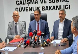 Çalışma ve Sosyal Güvenlik Bakanlığı Toplantı Salonu’nda bugün saat 09.50’de başlayan toplantıya, Çalışma ve Sosyal Güvenlik Bakanı Sadık Gardiyanoğlu, işçi tarafını temsilen Hür İşçi Sendikaları Federasyonu (Hür-İş) Başkanı Ahmet Serdaroğlu, işveren tarafını temsilen Kıbrıs Türk İşverenler Sendikası temsilcisi Ali Başman katıldı.