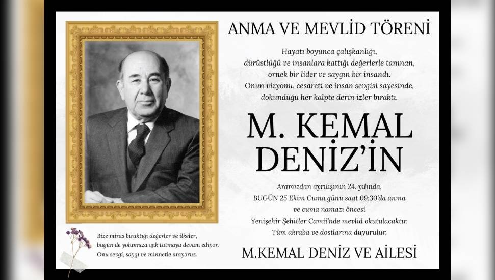 Merhum M. Kemal Deniz, aramızdan ayrılışının 24'üncü yılında mezarı başında düzenlenen törenle anılacak.