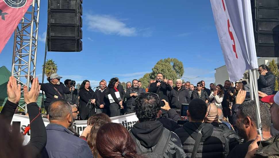 Kıbrıs Türk Kamu Görevlileri Sendikası (KAMUSEN) Başkanı Metin Atan ise, "Yasa çekilmediği sürece buradan gitmeyeceğiz siz de o koltukta oturmayacaksınız. Onlar yolunu belirledi bizim de yolumuz buradır. Çekecekler o yasayı. Yoksa son günleri. Yarın da yapacağız grev diğer gün de" ifadelerini kullandı