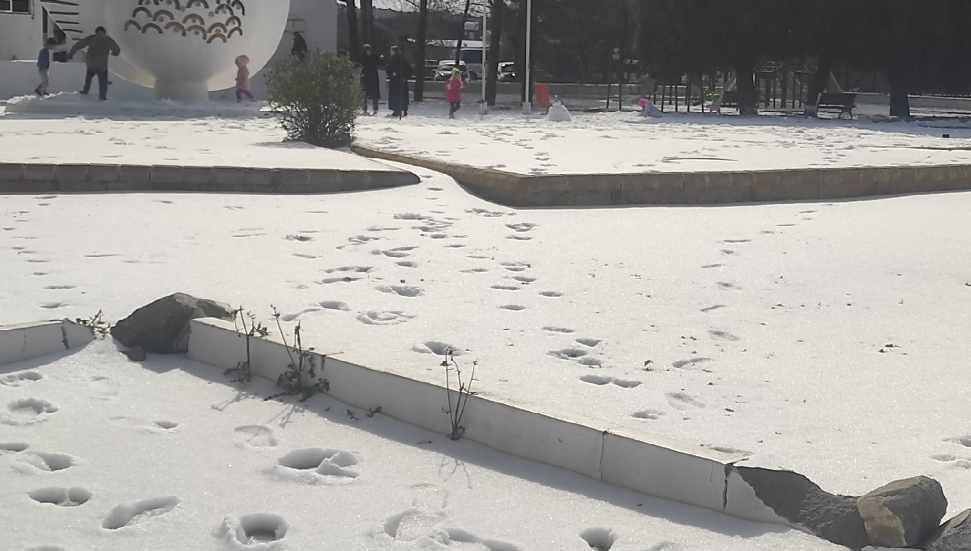 Dolu yağışı nedeniyle karı andıran manzaraların tadını çıkaran vatandaşlar da oldu.