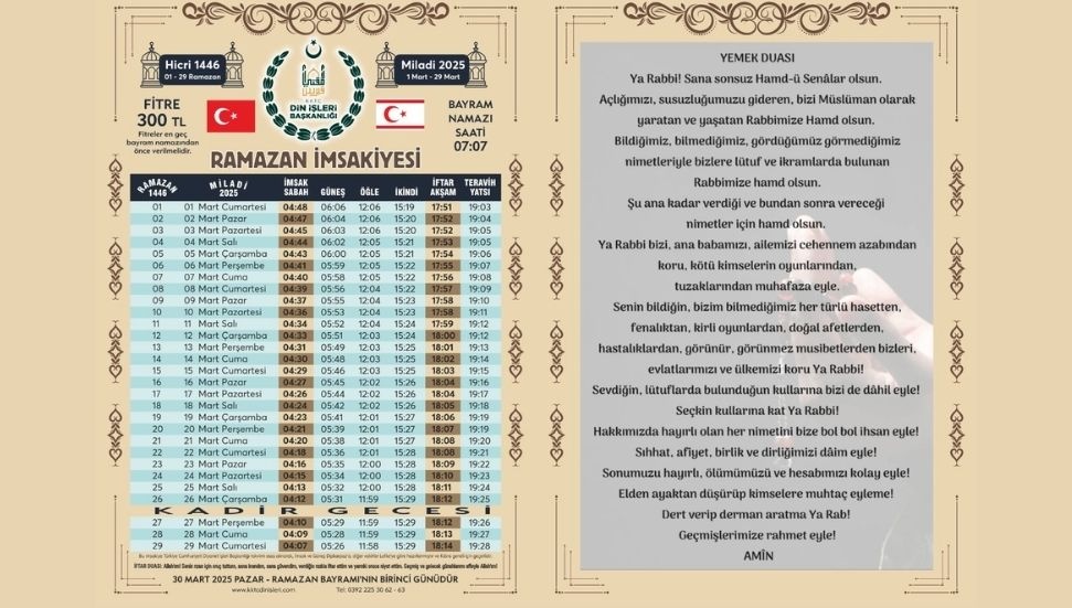 İlk orucun tutulacağı 1 Mart Cumartesi günü imsak saat 04.48’de, iftar ise saat 17.51’de yapılacak.