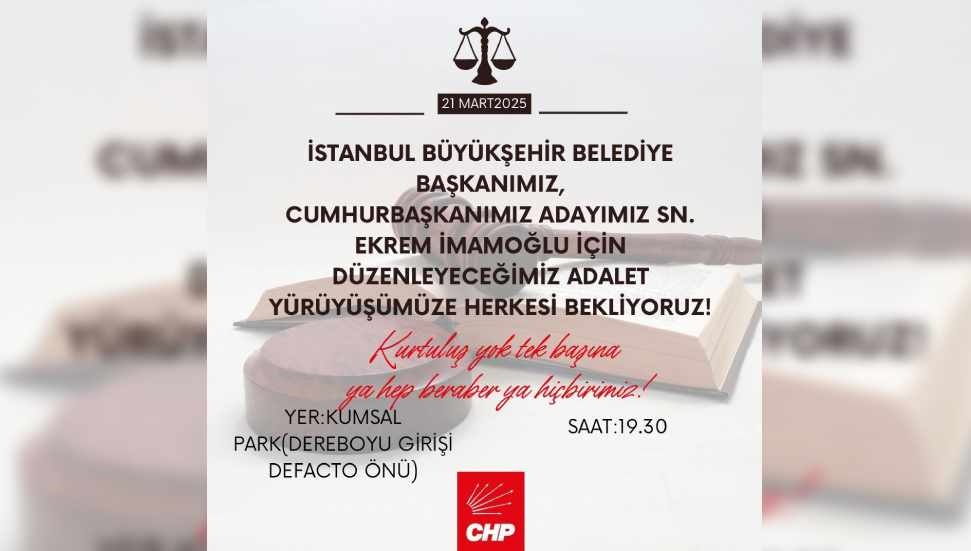 CHP Kıbrıs Temsilcisi Mustafa Yürükçü, İstanbul Büyükşehir Belediye Başkanı ve Cumhurbaşkanı adayı Ekrem İmamoğlu için düzenlenecek “adalet yürüyüşü” katılım çağrısı yaptı.