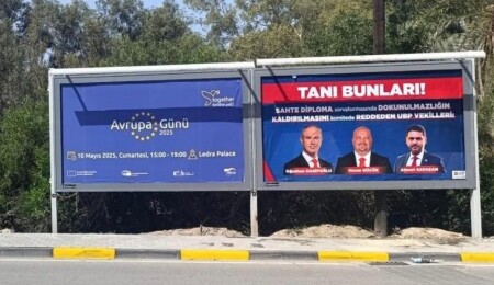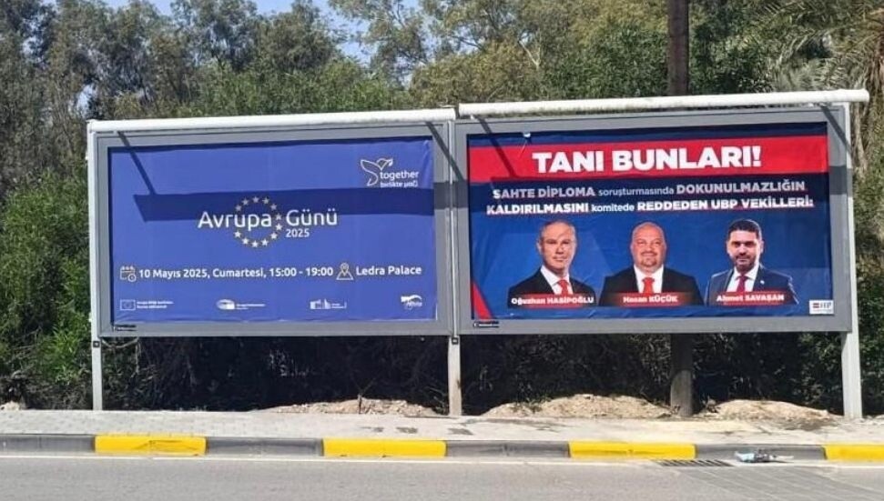 Halkın Partisi (HP) tarafından sahte diploma meselesi ile ilgili olarak dokunulmazlığın kaldırılmasına hayır oyu vererek engelleyen UBP milletvekillerini kamuoyuna duyuran ve daha sonra yırtılıp parçalanan Billboard afişleri bugün yenilenerek yeniden asıldı.