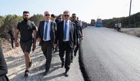 Dipkarpaz-Manastır yolunda asfaltlama çalışmaları başladı. Başbakan Ünal Üstel, bölgeye giderek, çalışmaları yerinde inceledi.