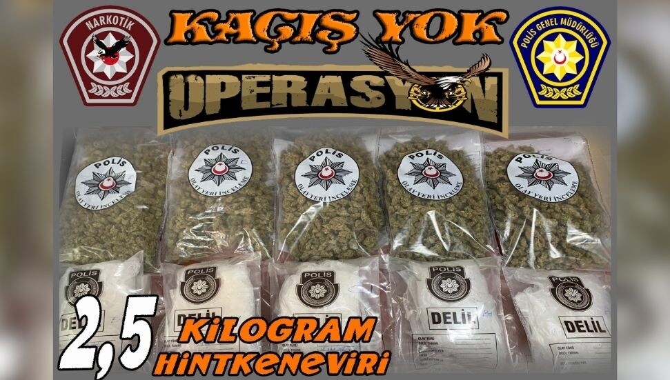Polis tarafından bugün gerçekleştirilen operasyonda 2 kilo 500 gram uyuşturucu madde ele geçirildi.