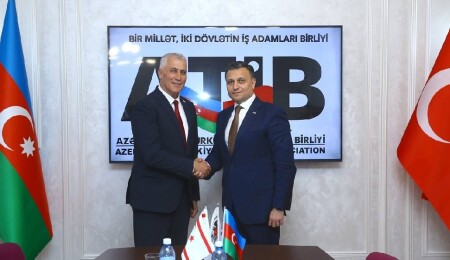 ATİB Başkanı Mürsel Rüstemov ve Yönetim Kurulu üyeleriyle görüşen Amcaoğlu'na Azerbaycan'da iş imkanları, Azerbaycanlı iş insanlarının KKTC'ye yatırım olanakları anlatıldı.