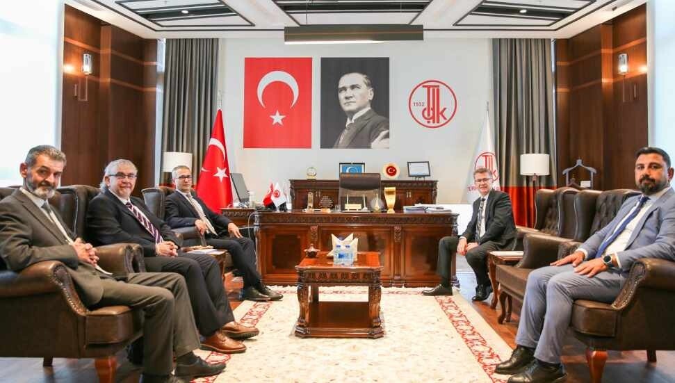İmza töreninin ardından protokol heyeti, Türk Dil Kurumu Başkanı Prof. Dr. Osman Mert’i makamında ziyaret etti.