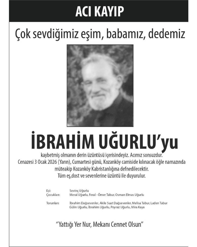 UBP Kozanköy Örgüt Başkanı Osman Uğurlu’nun babası İbrahim Uğurlu yaşamını yitirdi.